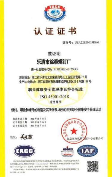 乐清市徐泰螺钉厂成立于1996年,坐落在浙江省